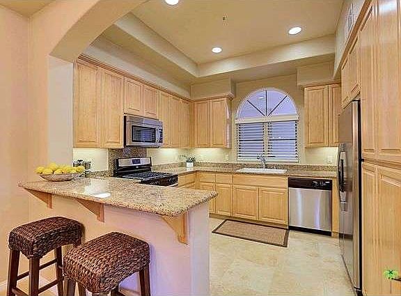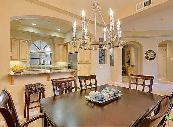 Designer decorated two bedroom, two bath plus den behind the gates of the highly sought after 55 or better community of Villa Portofino in the heart of Palm Desert. This 2012 Cortona II model has always been a second home and only occupied a few months since it was built. Featuring 1559 square feet, granite countertops, travertine floors in entry, kitchen and bathrooms, fireplace in living room, den with wet bar, in unit side by side washer and dryer, separate soaking tub and shower in master bathroom, dual vanities, solid core interior doors, maple cabinetry, upgraded carpet, designer paint, built ins, closet organizers, window coverings and more. Your HOA dues cover high speed internet, expanded cable with HBO and Showtime, water, trash, landscape, quarterly window washing and insurance.