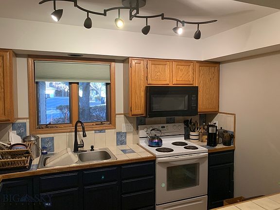Two-bedroom, two full bath Wildwood Court Condo set amongst trees and mature landscaping. This is a 1,184 SF, end unit, ground floor condo. The condo has a single-car garage, a single assigned parking slot and guest parking available. The efficient kitchen with modern lighting opens-up to the dining area and through to the living area. An enclosed patio is just off the main living area, which includes a wood burning stove. Electric baseboard heat throughout. The two bedrooms are separated by a laundry closet (full size WD) and a full bathroom. The primary bedroom (with bath) is large with extra space for a desk. Sold unfurnished, but all appliances convey. The garage has attic space via pull-down stairs. Close to Montana State University, grocery stores, banks, and downtown Bozeman. $165 monthly HOA fee, includes water and sewer.