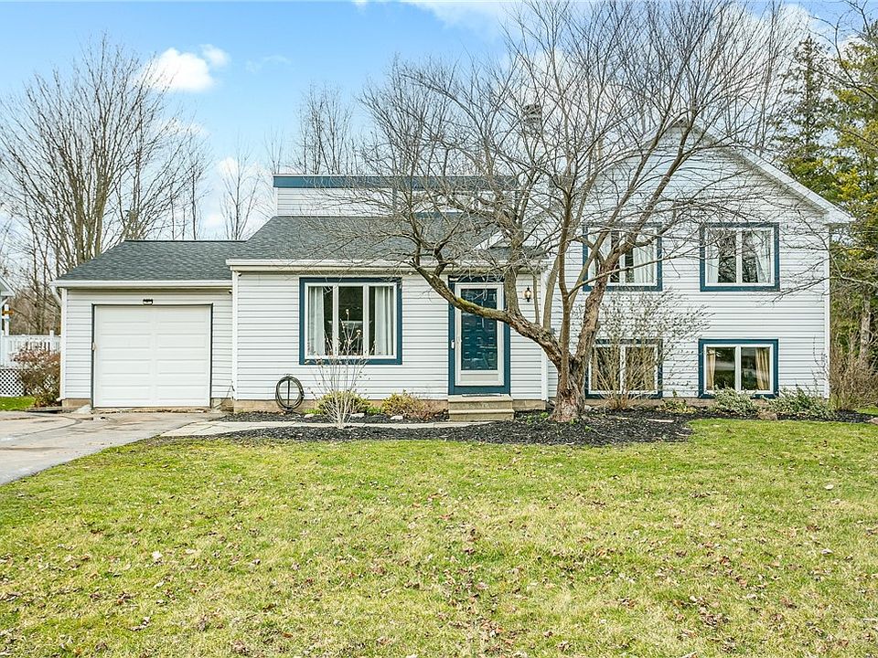 Welcome to this charming split level home in Walworth! Painted in neutral tones throughout so all you have to do is move right in and make it yours! The top level of this home has three bedrooms with two updated full bathrooms and the lower level includes extra living space with an additional bedroom & half bath. Snuggle up on cold nights in front of the wood burning fireplace and grill this summer on the second floor deck with access to the backyard - perfect for entertaining! Updates include new carpet and flooring in 2023 and a new roof in 2022. Showings begin March 14th at 9AM and negotiations will be held on March 17th @ 9PM. Open house Sunday March 17 from 2-4PM.