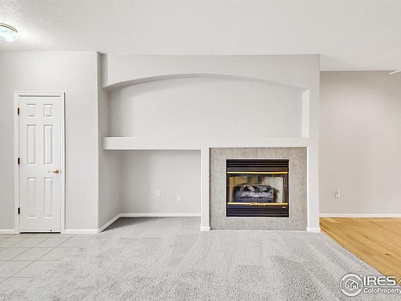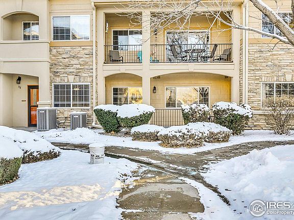 Nicely maintained two bed, two bath, 1st floor condo with brand new carpet and move in ready! Open living room/dining room plan with cozy gas fireplace. Hardwood floors in kitchen, dining & hallway. Spacious primary with 5 piece bath & walk-in closet. Newer furnace, A/C & hot water heater. Veranda for relaxing or entertaining overlooks green space. Tandem 2-car garage w/extra storage for bikes/golf cart/gear. Quiet area & low maintenance. HOA is responsible for snow removal, the yard and exterior maintenance. The Villas at Ute Creek are conveniently located close to shopping, restaurants, I25 and Ute Creek Golf Course!