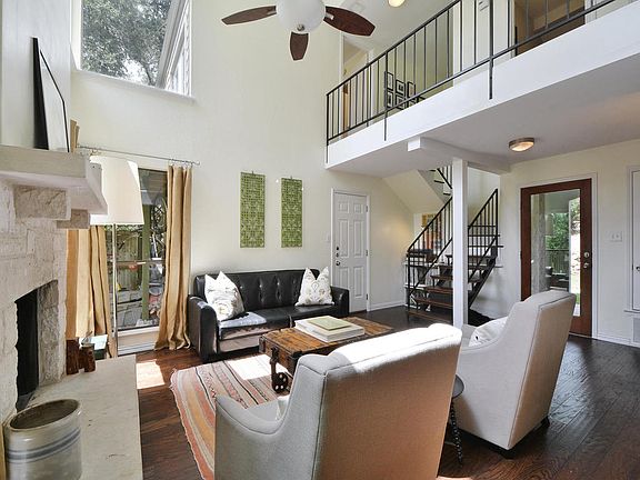 Adorable Westlake condo with huge entertaining size backyard. 3 beds/2 baths up. Cozy living room w/wood burning fireplace, large windows & vaulted ceilings. Formal dining area & cute kitchen with concrete countertops & pantry. Master bedroom with deck & 2 walk-in closets. Hard wood flooring throughout. Fantastic outdoor living, gorgeous trees & extra deep lot. 1 adjoining neighbor. 1 car garage with 2 additional parking spaces. Shared septic & water.
