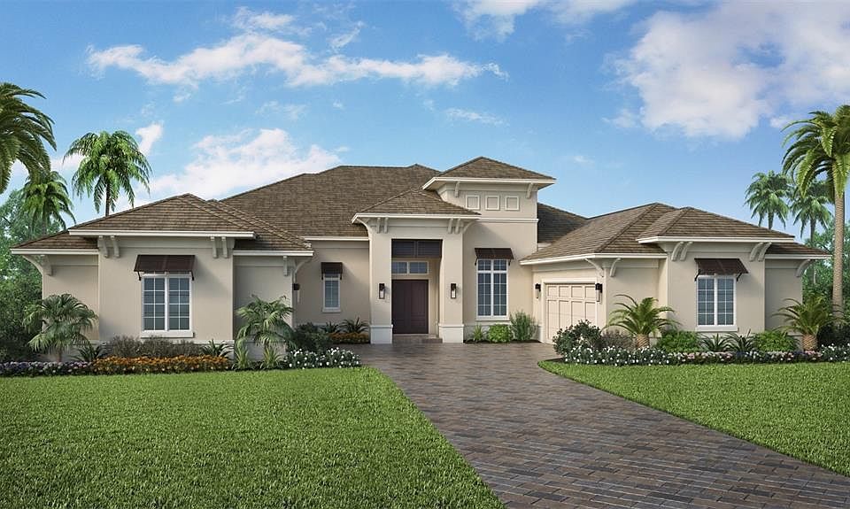 The Lake Club is a prestigious gated community located in Lakewood Ranch. This stunning 4-bedroom, 4- bathroom, 2- half bath home truly breathtaking. Boasting many exquisite upgrades, this home will provide you with every luxury you desire. Extra high ceilings throughout with decorative crown molding, 30x30 Tesso flooring, Minka Air ceiling fans in every room, and a built-in wet bar are you a few of the custom upgrades thar make this home one of a kind. The open floor plan allows for plenty of natural light to pour into the home, and the den/office and wet bar provide plenty of space for entertainment. Step outside into 1,700 feet of bliss. With a panoramic view of the lake, a Lani with travertine decking, and a full outdoor kitchen featuring a state-of-the-art smokeless grill, refrigerator, wet bar, and a built-in fireplace, you'll never want to leave. The saltwater pool with heated spa adds to the luxurious atmosphere of this home. There is also a circular driveway and two-two car garages with built-in storage shelving and extra storage units. Outdoor Wet Bar, Outdoor Built-In Fireplace and a whole house generator is also included.