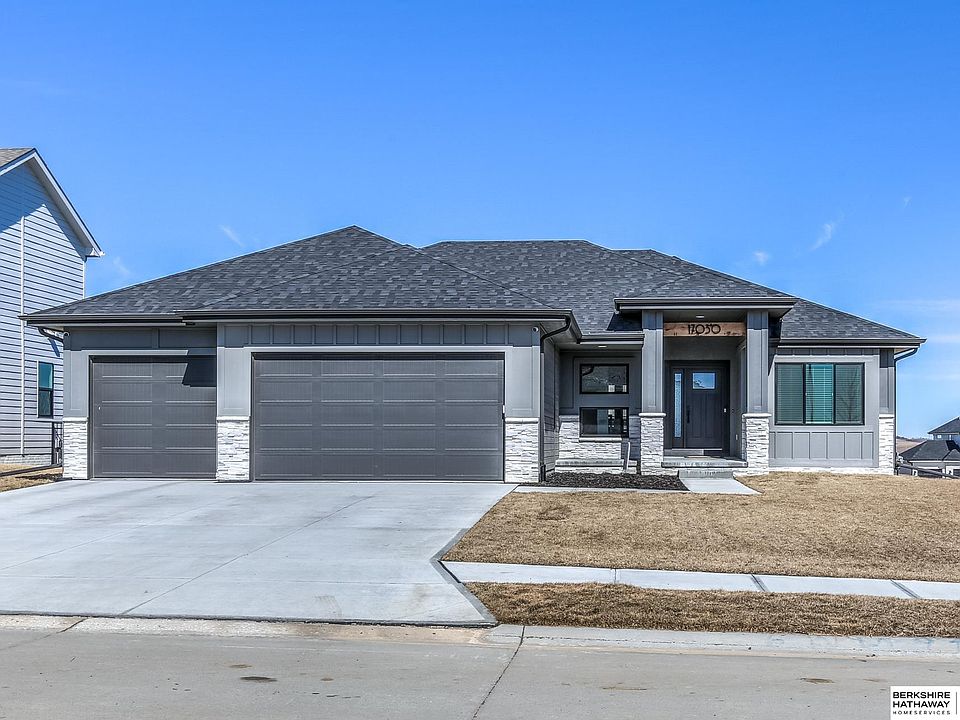 This pristine walk-out ranch sits on a south-facing lot & is walking distance to Bennington HS/MS & 4 min to new Elementary. Fall in love w/ all the benefits of a new home PLUS a heated/insulated garage,blinds & all appliances plus washer/dryer stay! It's sure to impress w/ its designer finishes,upgrades & space! The open floor plan shines bright w/ 9ft+ ceilings;neutral paint;gorgeous wood flrs;gourmet kitchen w/ gas range,walk-in pantry & quartz counters;massive LR w/cozy FP & bright sunshine through the oversized windows;primary suite w/ walk-in closet & spa-like bath w/ upgraded hardware/lighting,quartz counters & walk-in tile shower plus sizable secondary beds! Plan the perfect summer party in the finished,walk-out LL w/ wet bar & expansive rec area w/ FP & an abundance of storage! Enjoy the covered,composite deck overlooking the flat backyard & gorgeous lake views or being min. from DT Bennington plus quick access to NE-36 & tons of amenities on Maple St too!