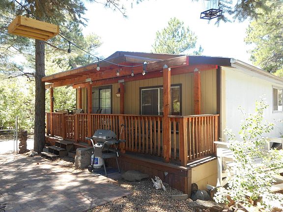 VERY CLOSE TO THE FOREST! The DW manufactured home has been partially updated and has a new front covered deck. Home also has a side covered carport. A large 500 square foot workshop is along the rear of the property. New master bath shower and updating.Open concept with living room, dining and family room all opening to one another. Large laundry room with office set-up possible.