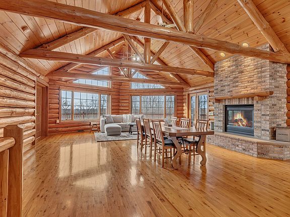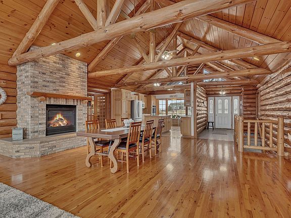 Welcome to your dream lakeshore retreat on Hook Lake! This stunning 4,700-square-foot walkout log rambler offers the perfect blend of rustic charm and modern luxury. Nestled on 2.6 acres of serene natural beauty, this extraordinary property boasts 270 feet of lakeshore, offering endless opportunities for recreation and relaxation.