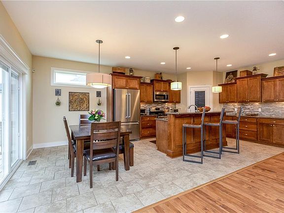 One of the lowest priced homes in all of Shadow Creek! This 5 bedroom ranch style home sits on a large 0.44 acre lot backing to trees and offers a covered deck and patio area perfect for outdoor entertaining. Some features of the home include: New Hickory hardwood flooring throughout much of the main level, massive extra deep 3 stall garage, mudroom off garage entry, all appliances included (stainless in kitchen), open kitchen with granite countertops, tiled backsplash, corner pantry, gas fireplace, tiled flooring, fully finished lower level with 2 additional bedrooms/wet bar/playroom/and incredible storage, incredible master suite with tiled shower and walk in closet, extensive landscaping, flat driveway, and numerous upgrades throughout. This home is located just off of Alice's Rd. and offers easy access to all Waukee Schools and the numerous amenities/parks/trails that Waukee has to offer. Very easy to show and immediate occupancy is available. Please call for a private tour.