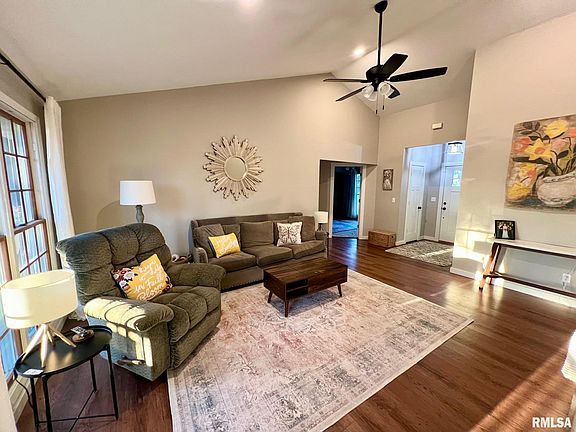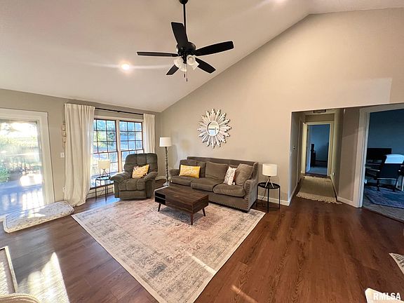GORGEOUS 3 bed/ 2 ba Ranch sitting on .41 AC with sprawling country views! This home has it all~ vaulted ceilings in Liv Rm, floor to ceiling Fireplace, hardwood laminate flooring, stunning Kitchen, large deck & secluded feel! Kitchen offers freshly painted cabinets w/ gold hardware, granite countertops, subway backsplash & crown molding~ Wowza! PLUS, it has a slider that opens to spacious deck for entertaining! Dining Rm has wall of windows to enjoy the scenery & open to Kitchen. Living Rm boasts vaulted ceilings, focal FP, fresh paint & open plan. Primary Bedrm is HUGE with backward views, walk in closet, hotel style bath! 2 other Bedrms on front of the house have good space, front field views w/ floor to ceiling windows. Backyard boasts enormous deck w 2 seating areas, room to grill, lush landscaping, fenced in yard and has the best sunset views in Menard County! :) New landscaping, 2 car garage, freshly rocked driveway & shed stays! Agent has personal interest.
