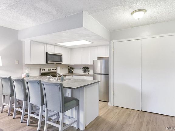 Welcome home to your updated and move in ready 2 bed/1 bath condo, close to everything! In 2021, this unit was nicely refreshed with an all new kitchen, new bathroom, new laminate flooring, and fresh paint. In Dec 2022, all windows were replaced. In addition to all new kitchen cabinets, counters, and appliances, the all new bathroom boasts beautiful tile and a 60 in x 42 in oval soaking tub - quite literally the largest you can find! Other highlights include the enclosed patio, wood burning fireplace, stackable washer/dryer, and an assigned parking spot just in front of the building. The enclosed patio is perfect for morning coffee, the evening breeze, and containing small humans or fur babies. The double sided fireplace can be used in the living room or primary bedroom. Nestled between Mountain View Park and a great retail area with public transit, you are only 2 miles from I-225 and City Center, 3 miles from I-70, 25 min from the airport, and 8 min from Buckley SFB. Check out the 3D video tour and schedule a showing with your agent today! https://virtuallysold.aryeo.com/sites/17034-e-tennessee-dr-102-aurora-co-80017-5191529/branded