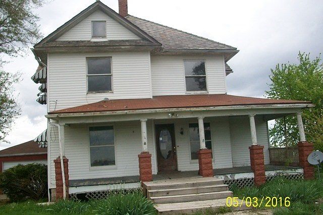 Large, solid, well-built home has TREMENDOUS RESTORATION POSSIBILITIES! Original features include painted kitchen cabinets w/frosted glass doors, beautiful varnished woodwork w/crown moulding, open staircase, lg.antique fireplace with glazed tile insets, HW floors under carpets, high ceilings, good full basement & more! House needs some TLC. Outbuildings include 30x60 pole. the property is being marketed in as/is condition with no inspections.