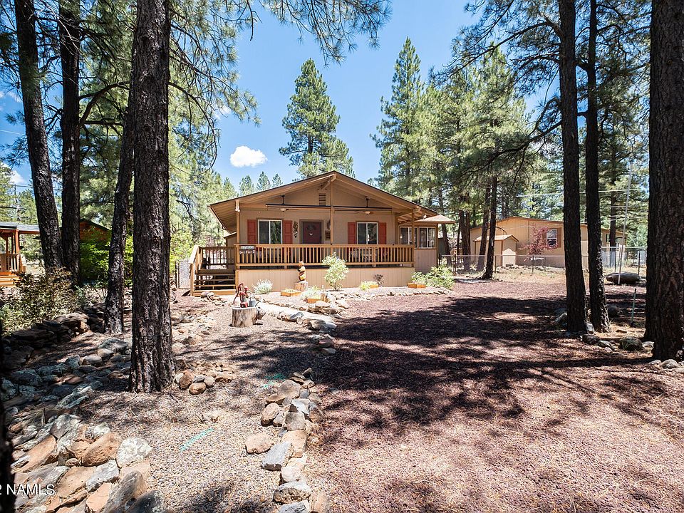 NOTHING LIKE LIVING RIGHT ON THE NATIONAL FOREST LINE! This Adorable two BR, two BA Home is just that! The Kitchen is Roomy, has gorgeous cabinets and space for a table plus a Work Bench. As it blends into a Dining/LR Area you will find a space for a Larger Kitchen Table or decorate it as you choose. The Family Room has Two Full Walls of Windows and a Tongue and Groove Vaulted Ceiling. A Perfectly enjoyable room allowing you the enjoyment of light and forest! HVAC SEER RATING IS 18. Out back is the patio which leads you out to a completely fenced yard with 3 gates. And there you are: ON THE FOREST with Beautiful Views of Trees; Deer and Elk etc. Don't forget the Workshop with electricity and a burn pit. Much work done on the house shown by attachments. One patio; one deck.