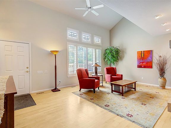 This gorgeous end unit townhouse is located in the highly sought after neighborhood of Sunrise Ridge. This home has an abundance of illumination that emits throughout the living space. This delightful home features solid hardwood floors throughout the main living area and kitchen. The stunning kitchen is updated and is opened to the eating space. The kitchen features stunning granite countertops and stainless steel appliances. The center island has been added for additional counter space for food preparation or snacks when entertaining friends and family. The cozy living room has a double sided gas fireplace for additional comfort in the winter time. Planation shutters throughout the home. Main floor bedroom with 3/4 bath. Substantial oversized 2 car garage. Extremely quiet location in the complex and sufficient visitor parking. Just steps to the swimming pool, community park and close to biking and walking trails.