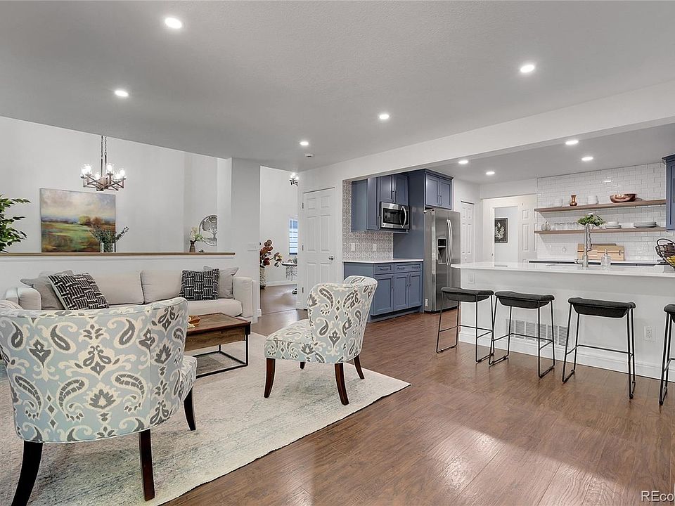 Step into this updated 5-bedroom, 4-bath home in the sought-after Clarke Farms neighborhood of Parker. Boasting vaulted ceilings and an open, light-filled layout, the home features new flooring throughout and a perfect balance of formal and casual living spaces. The kitchen showcases quartz countertops, stainless steel appliances and a seamless connection to the family room with a cozy gas fireplace and TV, while a separate dining area accommodates more formal gatherings. The main-level, fully remodeled laundry room adds convenience for modern living.