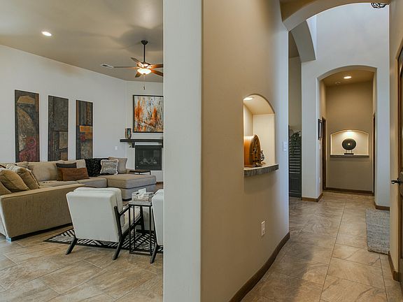 Smartly Placed in Rio Rancho's most sought-after community. Stunning custom Crescent home sits on a spacious 1/2-acre lot surrounded by other custom builds. Spanning 3,014 sq. ft., this 3-bedroom, 2.5-bath beauty offers an open floor plan with a 3-car garage. The gourmet kitchen boasts custom cabinetry, premium granite, built-in oven/microwave, gas cooktop, backsplash, pantry, & an island with seating. The living area features raised ceilings, a gas fireplace, & abundant natural light. Enjoy a bonus/media room for added flexibility. The luxurious primary suite impresses with a tray ceiling, private patio access, spa-inspired bath with dual vanities, granite counters, soaking tub, rain shower, & a walk-in closet. Step outside to an amazing backyard perfect for enjoying breathtaking views!