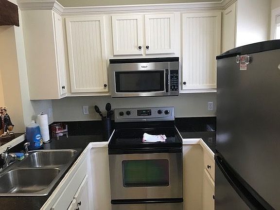 Wonderful two bedroom two and one half bath unit. All appliances and blinds remain.Corner unit Fenced in patio. Wood floors with carpet upstairs. Close to campus! A must see. All furniture to remain with exception of personal items. .