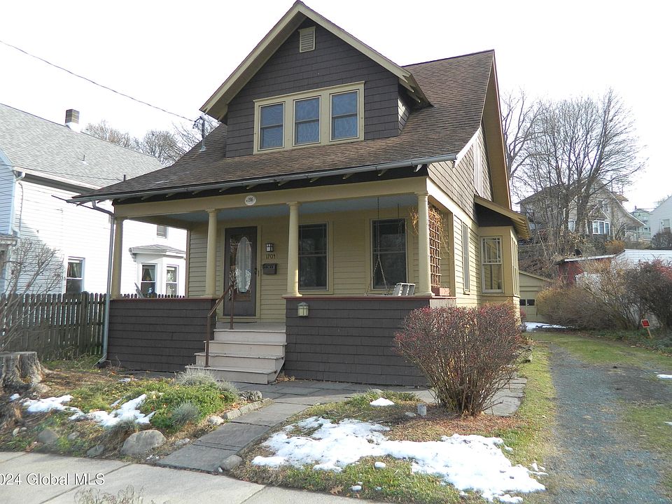 This three bedroom home is located on a quiet street, full of charm & original woodwork. Inviting covered porch complete w/ swing. Renovated Eat-in Kitchen w/ stainless steel appliances, plenty of cabinets, under cabinet lighting & hardwood floors. Dining Room open to living room makes a perfect space for entertaining. Two car garage & off street parking. Private backyard. Full dry basement w/ laundry area, w/ a large space for hobbies & more. Updated Heating system, updated Electric panel, on-demand hot water heater & more! Convenient to train station, downtown Albany and just minutes to Regeneron. A must see! Roof new 2008.