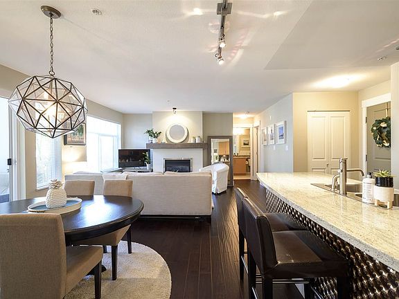 Bright and spacious 2 bedroom, 2 bathroom condo in desirable Heron Cove. Lots of updates including granite counters in both bathrooms, 6" baseboard and hardwood floors throughout. The kitchen features granite counters and s/s appliances. Laundry room is complete with built-in cabinetry w/ a sink and side by side washer and dryer. Bedrooms are at opposite ends of the open concept living space. Large, covered deck with room for your outdoor patio furniture and BBQ. Gas range, fireplace and gas BBQ hook up are a bonus as gas is included in the maintenance fee. Well maintained, quiet building tucked away from the main road. 2 pets are allowed without size restriction. Close to Southpointe Academy, Beach Grove Elementary, transit, trails and Beach Grove Golf Course.