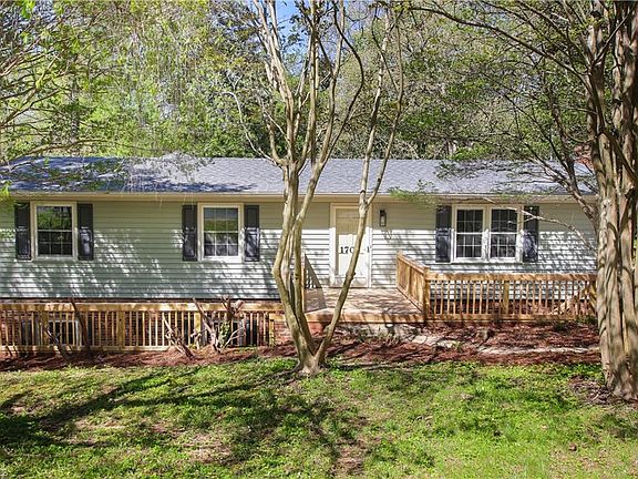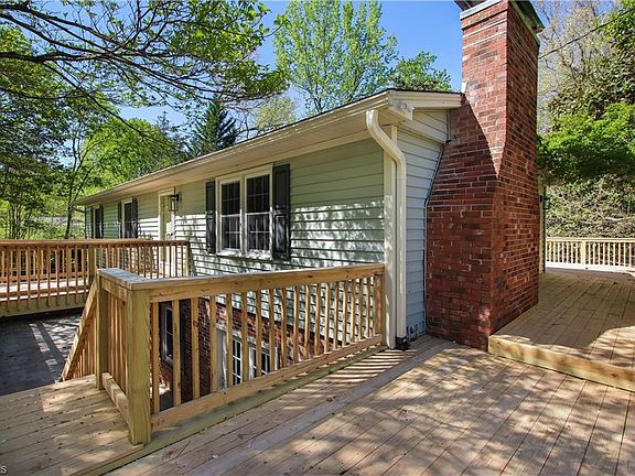 Beautifully remodeled home! New Roof & New HVAC 2023; Large eat-in kitchen with all new cabinetry, granite countertops and new appliances & pantry, open floor concept with brick fireplace in living room. Spacious primary on main with private laundry room, on-suite features double vanity, large walk-in closet and tile shower, with French doors leading out to large wrap-around deck. 2nd bedroom with built-in cabinetry for added storage could be used for home office. Finished basement with 4th bedroom, full bath and 2nd laundry room, lots of natural light and two entry points. Lots of storage inside and outside with this home. Sit on your backyard deck and enjoy the sounds of nature and natural creek along back border of property. This home is a must see!