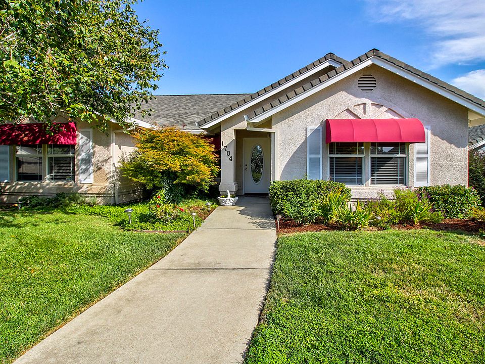Beautiful Vineyard Home! Bright & well cared for. Vaulted ceilings. 2 bedrooms + den. Rare floor plan with half bathroom off the laundry room. Almost new roof & HVAC system.Gas ava in lvg rm for gas stove! Plenty of off street parking on this generous drive way. Privately located in the rear of this popular gated community. Clubhouse, Pool, Private ponds w/walking trails, RV parking & so much more
