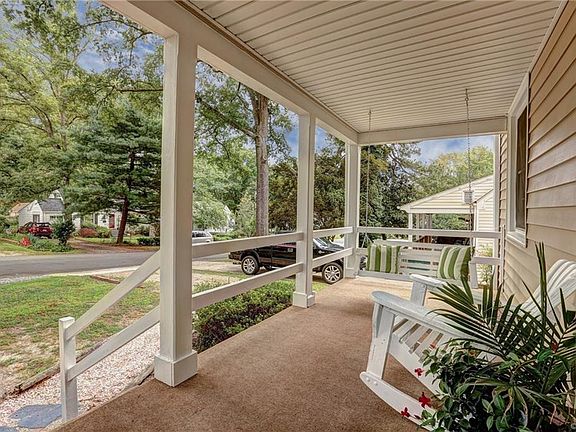 The large front porch of this cute cape welcomes you! Picture yourself relaxing on the swing or visiting with friends. The living room with wood floors flows to the dining room with single French door to deck. The kitchen has a bar overhang and opens to the dining room making for great entertaining space and every day living. The utility room is conveniently located off the kitchen and has ample room for extra storage. Two bedrooms, both with wood floors, and a full bath complete the first level. The second level works great as a master suite. It offers a bedroom, dressing room with multiple closets and a full bath. The large rear yard has a privacy fence and tool house. Easy care home with vinyl siding and new deck! Move right in and enjoy this convenient location!!!