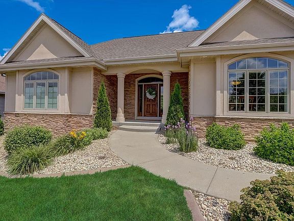 STUNNING & METICULOUS Ranch Home in Southbridge w/3 Bedrooms, 2.5 Baths, Sunroom, 3 1/2 Car Heated Garage & 1st Floor Laundry! Gorgeous Kitchen w/Quartz Countertops, Work Island, Custom Cherry Cabinets, Walk-in Pantry, Dinette Area + Formal Dining Area! Great Room w/Gas Fireplace & Tray Ceiling! Huge Master Suite w/Large Walk-in Closet + 2nd Closet & Private Full Bath w/Large Walk-In Tiled Shower! Family Room in Walkout Lower Level w/Wet Bar + Theater Room! Brazilian Cherry Hardwood Floors! Pella Windows! Zoned HVAC! Central Vac! NEW Maintenance Free Deck-2022!
