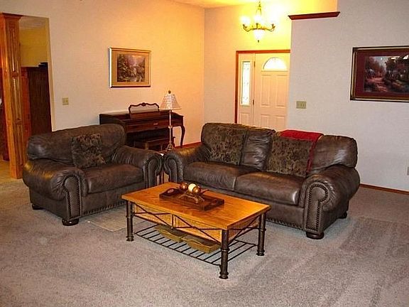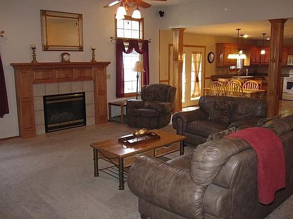 Great open floor plan with high ceilings! You'll love all the extra upgrades the owners have done over the past few years. Large kitchen with lots of cabinet space, newer counter tops, tile backsplash and newer appliances. Refrigerator stays with the home. Tile floors in kitchen, dining, laundry and bathrooms. The living room is wired for surround sound and has a beautiful gas fireplace. Large master bedroom with master bath with his and her walk-in closets, double vanities, jetted bath tub and walk-in shower. The backyard is privacy fenced with great landscaping and has a large deck perfect for grilling and entertaining. The home also has a security system. The 3rd car garage is extra deep to accommodate a 4th car, boat or would make a great workshop area.