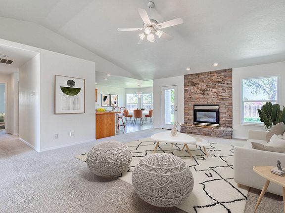 Honey, stop the car! This beautifully maintained, one-owner single-level home is a true gem in central Meridian. Located in a small, quiet subdivision with easy access to shopping, dining, and the freeway, this home offers both comfort and convenience. Step inside to soaring vaulted ceilings and a bright, open great room filled with natural light. The desirable split-bedroom floor plan provides privacy and functionality. Cozy up by the gas fireplace or entertain in the formal dining area—which could easily be enclosed to create the perfect home office. Enjoy the spacious, private north-facing backyard with room to add a pool, garden, or both! Recent updates include fresh interior and exterior paint, a new roof (2019), new AC (2024), and a brand-new furnace (2024). Additional features include a 3-car garage, 3 bedrooms, and 2 full bathrooms. This home truly checks all the boxes!