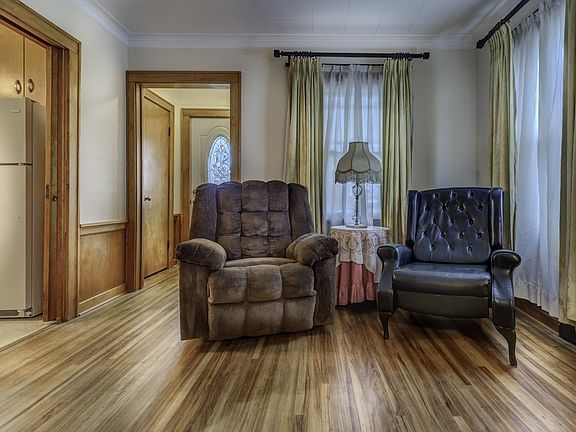 Just absolutely Immaculate! Hardwood floors and wainscoting in spacious living room, hallway, and the 2 main level bedrooms. Main level bath has been completely redone, with new sink, fixtures, stool, and porcelain tiled floors and shower surround, porcelain tub has been beautifully re-glazed. Warm family room has vent-less gas log fireplace, laminate plank floors, cathedral ceilings and French doors. Just outside is the deck to enjoy the park like setting of the landscaped back yard. Updated landscaping all around the house. Upstairs is a large bedroom with built-in drawers and cabinets, large closet, and 2 dormers that adds for many different uses. Finished basement includes gorgeous wood paneling, bar, built-in bar shelves, and carpeted floors. The unfinished side has a full functional bath. Vinyl windows throughout the home. Complete tear off of the roof including replacement of damaged decking summer of 2019! Exterior Aluminum siding and interior freshly painted. Garage has 4-year old roof, vinyl siding, insulated walls, and garage door opener. Loads of built-ins. Well-cared for. Spanish lace ceilings. Fantastic Hamilton Park one block away includes 3/4-mi paved trail, basketball, baseball/softball, tennis, playground, pavilion, and more. Downtown revitalization 5-min drive or 10-min bicycle ride away. Shopping, schools, churches, restaurants, library, etc. all nearby.