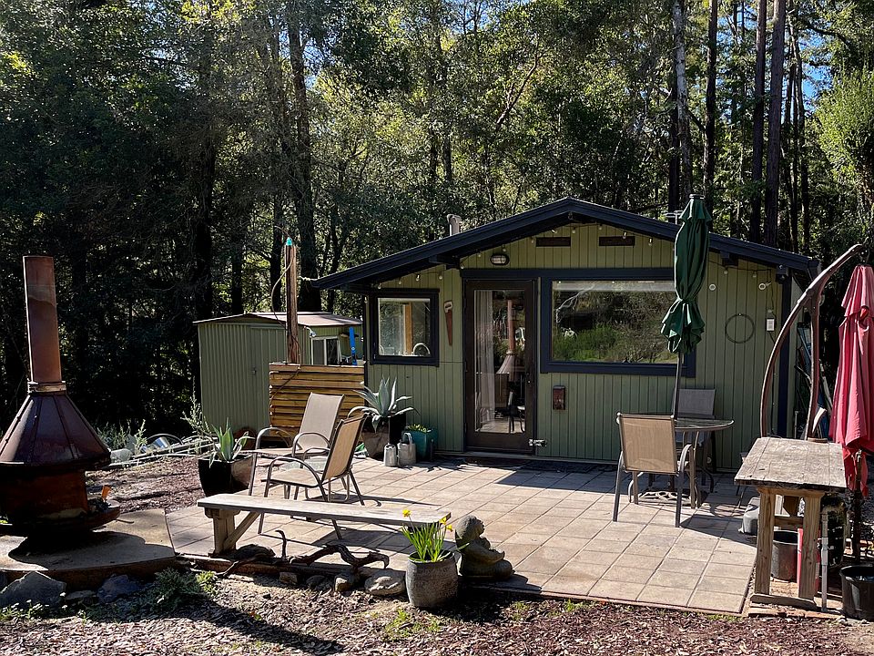 This is an off-grid studio/cottage is in a sunny mountain meadow five minutes from downtown Felton and 15 minutes from Santa Cruz. Great neighbors at the other end of the driveway. Electrical is from solar and a back up generator. Heat is propane. It is a very cozy little cabin with a grand outdoors. Included: full size bathroom (5 x 9), inside and outside showers, a 40 inch TV monitor. HughesNet connection is good enough for email, web browsing, and movie downloads. I used the Satellite Felton workspace for work when I needed a fast connection. The quality of cell phone calls is spotty at times. The solar system is sized for an RV (1,000 watts) which is enough for lights, an under-counter refrigerator, electronics and a single slice toaster. Living off-grid in this case means using water sparingly, low water pressure, hauling your own propane, and taking care of your own trash (or coordinating with the family on the other end of the driveway). Rent does not include internet. Good referrals a must. Off-grid experience preferred While this offering is month-to-month the goal is to have a long term tenant.