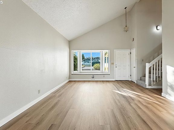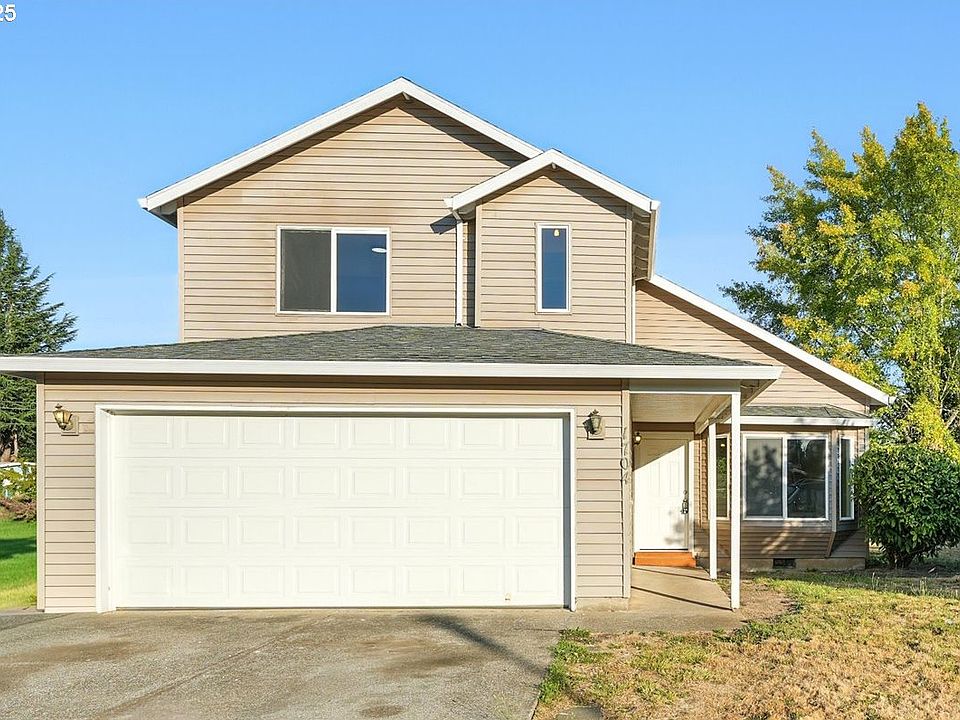 An amazing starter with great sq. footage at an achievable price! This home is a full meal deal for someone wanting a chance at home ownership. It offers 3 bedrooms, one being a primary suite, an additional hallway bathroom, and a powder bath on the main. The interior is contemporary with vaults and glorious big windows. Enjoy the light and nature from your own yard. An expansive front, back, and side yard are sunny and bright and ready for an avid gardener. The attached garage is perfect for a few smaller vehicles or a hobby and storage. The street is tidy and the neighbors are ready for you!
