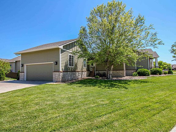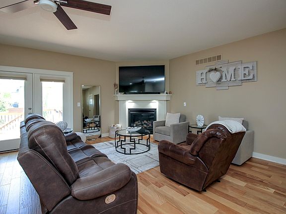 Welcome to this custom, beautifully designed home located on a picturesque golf course in the sought-after Sand Creek Subdivision. Surrounded by stunning, well-maintained landscaping, this meticulously cared-for residence boasts exceptional features. Upon entering, you'll find the primary bedroom on the right, complete with an en-suite bathroom featuring double vanity sinks with onyx countertops, and a walk-in closet that conveniently leads into the laundry room. The main floor also houses a second bedroom and bathroom. The open floor plan allows for a seamless transition between cooking dinner, enjoying the gas-burning fireplace in the living room or gathering around the dining table. The kitchen is equipped with quartz countertops, custom kitchen cabinets with under-mount lighting, a Bosch convection oven, and a Jenn-Air gas range with downdraft, making it perfect for both entertaining and everyday cooking. The recently finished basement, completed within the last three years, offers a wet bar, a second living area with a gas-burning fireplace, a third bedroom and bathroom, and a large unfinished storage area. The oversized 2-car garage includes custom-built cabinets, laminate flooring, and extra shelving for all your storage needs. Additional features of this home include a central vacuum system, a high-efficiency furnace, and a sprinkler system set up on an irrigation well to save on water bills. The Sand Creek Subdivision offers a pond for fishing, walking paths, a swimming pool, a clubhouse, and, of course, an amazing golf course. This home truly has it all, offering a blend of luxury, comfort, and convenience. Don’t miss the opportunity to make this dream home yours! Schedule a tour today and experience the exceptional lifestyle this home has to offer.