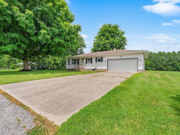 Charming 2 bedroom and 1 bathroom ranch that is move-in-ready and in a wonderful neighborhood. This home sits on a private double lot that has a backyard surrounded by lush trees, perfect for dogs and kids to get outside this summer! Full unfinished basement, neat and tidy and ready for your design.You will be pleasantly surprised that the garage feels more like a spacious shop. New features include: flooring, shutters, garage door, ceiling fans, some cabinets, bath tub, a new window and door, kitchen countertop, and faucets.
