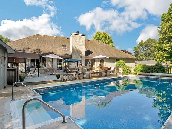Enjoy this beautiful, ranch in the Green Acres Subdivision that offers an inground pool, 3-4 bedrooms, 2.5 baths, and over 2,800 finished square feet which includes a finished basement. Walk through the front door to an entry and living space that allows for natural light with vaulted ceilings, a fireplace, and a view of the stunning pool area. Kitchen is applianced and contains a spacious eat-in area! Owner's suite is cozy with a walk-in closet and private bathroom. Finished basement includes a living area, possible 4th bedroom, and office/storage area. Other features: enclosed porch, laundry on main, oversized 2 car garage, pool liner 2 yrs old, pool pump 3 yrs old, roof 8-9 years old, HVAC approx. 5 yrs old.