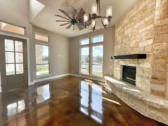 This stunning custom-built 2-story home is an absolute gem, nestled within a prestigious gated community walking distance from Gruene. As you step inside, your eyes are immediately drawn to the magnificent concrete flooring, spacious living area w/ custom floor-to-ceiling rock gas fireplace. The kitchen is a true chef's dream, boasting luxurious granite countertops, farm house sink, equipped with a gas range & open view to the living area. Just off the kitchen is the half bath for guests, as well as the primary bedroom, offering a private full bathroom featuring a double vanity, adding a touch of luxury, floor-to-ceiling tiled walk-in shower. Decorative custom staircase leading upstairs to the secondary bedrooms connected by a convenient jack and jill bathroom. Adjacent to the bedrooms is a thoughtfully placed laundry room. Enjoy a short walk to restaurants, shops and live music at Gruene Hall! This home has it all and so much more! **Lawn Care Provided by HOA** Animal limit 1-small dog under 25 lbs or 1-cat w/ Landlord approval.