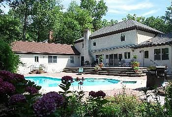 Custom-built, center-entrance, 2-story traditional on acre lot in desirable Forest Hills Park. 4,100 sq ft w/ 5 bedrooms, 3.2 bath; exceptionally large rooms; open floor plan w/ circular flow, tall windows; good natural light; abundant storage. Eat-in kitchen w/ Gaggenau 6-burner gas cooktop adjoins huge great room w/ stone fireplace; 1st floor study and very large formal dining room flanking wide foyer. Floor- -to-ceiling glass on rear elevation opens to raised terrace overlooking in-ground pool & beautifully landscaped yard. 1st floor office, laundry room, full bath. Attached in-law apartment w/ 900 sq ft,; separate utilities. Very private, heavily wooded neighborhood convenient to shopping, I-95, Philadelphia airport. **Credit for pool repairs (not structural) See agent for details**
