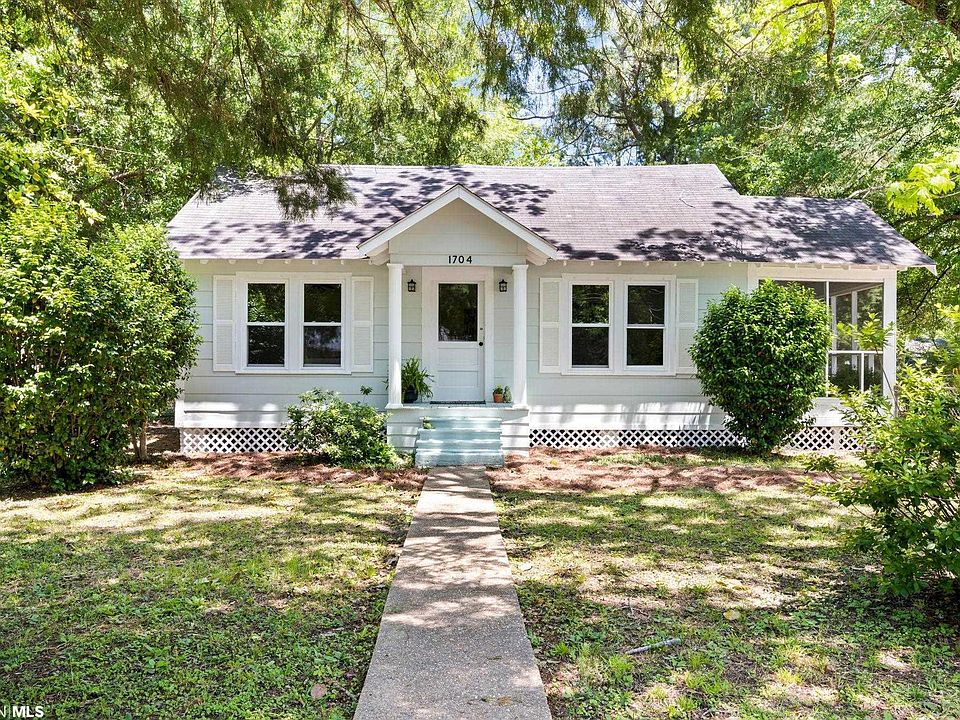 This adorable, completely renovated 3 bedroom/1 bath home combines the charm and character of a 1950s bungalow with the modern conveniences you expect today. Updates include new plumbing and water heater, new energy efficient windows with lifetime warranty, entirely new HVAC system and duct work as well as new interior and exterior paint. The spacious kitchen includes new cabinets and hardware, butcher block countertops, Samsung stainless steel appliances and an adjoining breakfast nook. You will find new ceiling fans in the living room and bedrooms and custom light fixtures throughout. There is original hardwood flooring in the main living areas and primary bedroom with new luxury vinyl tile in the kitchen, laundry room and bathroom. Relax on the screened-in porch or enjoy time in the large fenced in backyard, complete with carport and shed. This home is perfectly situated near downtown and minutes from 59 and 65. Only miles from the new Novelis recycling plant and Coastal Alabama Community College, this home is a must see. ***Owner Financing now available with a considerable down payment.***