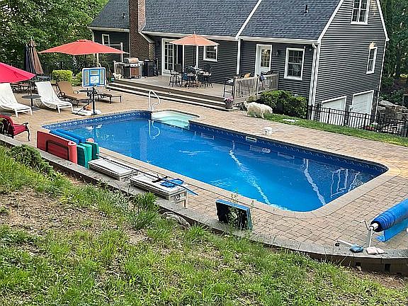 Beautiful isolated property that abuts Woods. Backyard is an oasis with beautiful pool and large paver deck and raised wooden deck. In 2022 the following was done: All new Certainteed vinyl siding, all new fiberglass Marvin Ultrex windows, new roof and all new Provia entry and sliding doors.