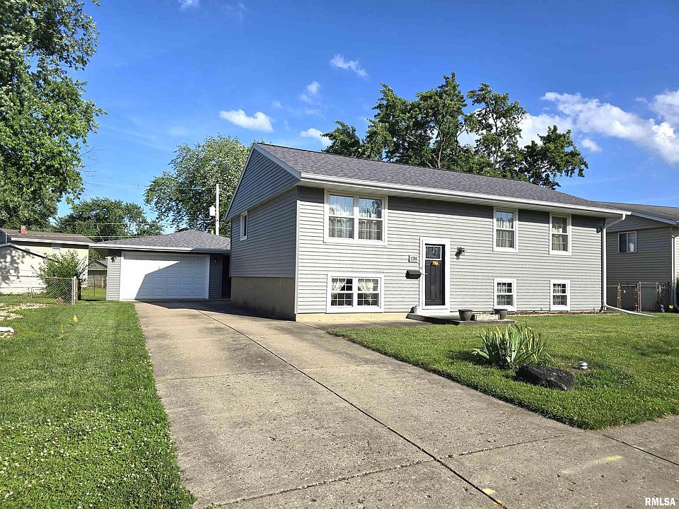 Welcome Home! Immaculate 4 bedroom 2 bathroom beauty in popular Holiday Hills! Major updates in the last 5+years include: siding and roof shingles on both the house and garage, soffits, gutters, gutter guards, garage door, boarding inside the garage, paint, trim, appliances, water softener, bar doors, lighting and more! Tastefully remodeled kitchen with ample cabinets, a pantry, quartz counters, built in shelves for a coffee bar and stainless appliances. The lower level offers a cozy and spacious family room with daylight windows for natural light, a large bedroom, a laundry room and a storage room that could easily be converted to another bedroom! The oversized garage (16x30x26x14x10x16) with covered patio is perfect for summer cookouts (patio furniture stays). Well-groomed backyard! Appliances stay in "as is" condition. Room sizes and square footage are estimated, not guaranteed to be correct. SQ. FT. per Tazewell County records.