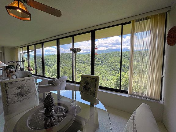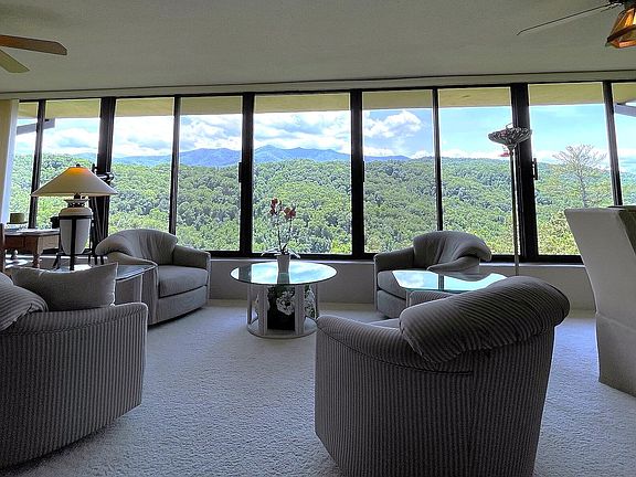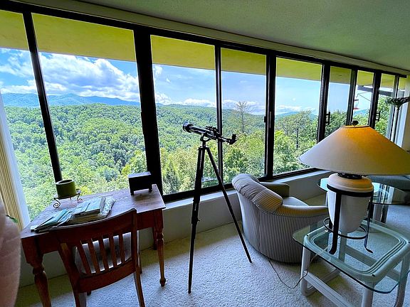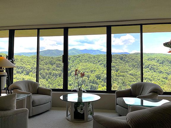 LeConte Towers offers the highest standard of condominium living in the Smoky Mountains. This center penthouse unit opens up to some of the most incredible, unobstructed views of Mt LeConte that you will find. The entire back of the unit is a wall of windows looking straight into the Great Smoky Mountains National Park, meaning that this view is protected against future development. There is literally 180 degrees of mountain views from Cosby to Ski Mountain in Gatlinburg. Unit 603 has been remodeled incredibly well maintained. The kitchen offers loads of granite counter space with a pass through bar, travertine backsplash, new appliances, tile flooring, and an abundance of cabinet space. The floorplan is open and flows really well. There are three bedrooms and two full bathrooms. The sellers are currently utilizing one of the bedrooms as office space. The bedrooms are large and have walk in closets. Both bathrooms have been remodeled with new granite and the oversized vanities are beautiful. The large open living room is accented by a massive mountain stone, wood burning fireplace with custom mantle and a reach out and touch the mountains view. The dining area has plenty of space for entertaining and family meals. The centerpiece of this amazing condo is the great room. There are 9 massive windows with full southern exposure. Pictures do not do this view justice, you must see to believe. The grounds are incredible with mature landscaping, blooming flowers and a ton of amenities. There is a clubhouse, tennis courts, and a large outdoor pool. There are no overnight rentals allowed in LeConte Towers creating a very quiet and serene environment. The unit comes with one dedicated parking spot and and 2 extra storage areas. The unit comes fully furnished making this a great opportunity for a second home. Call today and schedule your own private viewing!