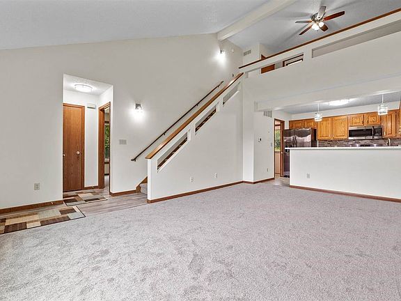 Affordable and move-in ready renovated zero lot home! Zoned as a condo but treated as a zero lot with no HOA fees and full ownership of yard. Recent updates include new carpeting & LVP flooring in entry & garage entrance, new lighting, updated electrical, new countertops, sinks, faucets, new tile backsplash in kitchen, newer windows, newer roof, new handles & doorknobs and freshly painted interior. Breakfast bar in kitchen. Open floor plan. Primary bedroom on main floor. Laundry on main floor. Loft/second bedroom on second floor. Vaulted ceiling in living room. Two private decks with separation wall - one off main level and one off loft/bedroom. One car attached garage. Tile flooring in bathroom, laundry and kitchen. Partially fenced backyard. All appliances stay with home.