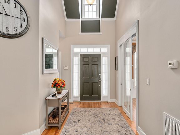 This beautiful ranch home, with a desirable split bedroom floorplan, sits on a ½ acre lot and offers all the right features for comfortable living! Vaulted & 9' ceilings throughout making the space feel light & airy. Site finished hardwoods in the main living areas are in excellent condition. The dining (or flex) room has sliding glass doors, crown molding and wainscotting. The kitchen has recessed & under cabinet lighting, reverse osmosis filter at the sink and opens to the eat in dining area and family room, perfect for entertaining. The family room shows off with a floor to ceiling tiled hearth that includes a hidden equipment shelf and a convenient gas fireplace. Owner's bedroom features a double tray ceiling and an amazing renovated on-suite bath and incredible custom WIC. The secondary bath has a spacious dual vanity and an awning window above the shower/tub. Bonus room, laundry room and garage have additional storage. The backyard is the place to be with an expansive 14x20 enclosed porch with exposed wood ceiling, Eze breeze windows, remote control shades, mini-split HVAC system, an additional patio and a fenced in yard that goes beyond the fence on the left side and rear. Roof (2017); Water Heater (2018); HVAC (2019).