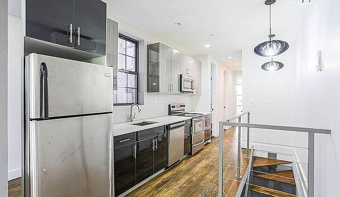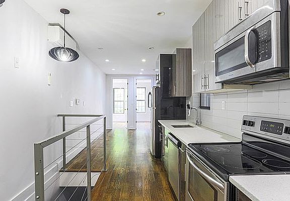 Private Backyard! 4 very large bedrooms with closets in this floor- through duplex in beautiful Ridgewood. Beautiful modern finishes including stainless steel appliances in the open concept kitchen along with stone countertops. Kitchen opens into very large living area. Beautiful hardwood floors cozy up this enormous home. And the high ceilings make an already huge apartment look even bigger. Both beautifully appointed full bathrooms include either a deep soaking tub or a stall shower with rainfall shower heads. *Photos of a similar unit AMENITIES Central A/C Exposed Brick High Ceilings Hardwood Floors Video Intercom Dishwasher Laundry in building