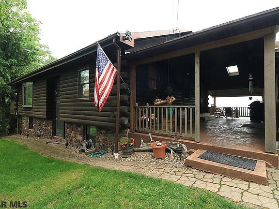 Nestled on top of Moose Run Road perfectly positioned on 1.63 wooded acres & providing breathtaking panoramic views of Bald Eagle Valley sits this lovely log split level. This move-in ready home offers a spacious open concept floor plan with a large great room, kitchen & dining area perfect for everyday living & entertaining. 16 foot vaulted ceiling with exposed pine beams, tongue & grove walls & ceiling, stunning floor to ceiling stone propane fireplace & stone walls add to charm. The kitchen features granite countertops, tile backsplash, tile flooring, breakfast bar & beautiful maple cabinets. There is a main floor owner's bedroom & a full bath. The walk-out lower level boasts 2 bedrooms, another full bath, laundry area & unfinished space for storage or future finished living space. The covered breezeway with skylight leads to the oversized 3 car garage & features stamped concrete patio & a cedar deck. Newer deck off of the great room & newer sand mound septic system installed in 2017. New metal roof was installed in 2019. Combination HVAC sources include heat pump, propane forced air, electric baseboard & central air conditioning. This scenic & serene home can be yours! Schedule your private showing starting Friday, June 11th.