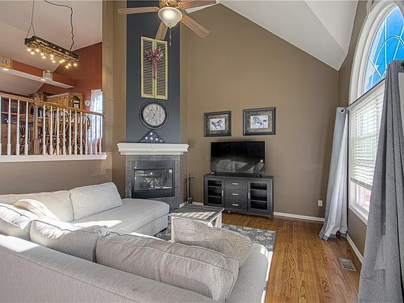 Welcome to this inviting California Split nestled in a peaceful CUL-DE-SAC, just steps away from the scenic Smithville Lake and Golf Course! Fantastic curb appeal features a beautiful front porch (2021) and fresh exterior paint (2021)! This home boasts an open and airy floorplan filled with natural light. Living Room showcases beautiful mantle, fireplace and hardwood floors! Beautiful drop zone off garage and front door! The Kitchen boasts ample counter space, numerous cabinets, a pantry, new sink, island and a breakfast bar. Laundry off main level conveniently next to 2 bedrooms and hall bath! Your private retreat awaits in the expansive Master Suite, adorned with a vaulted ceiling, a generous walk-in closet, two separate vanities, relaxing jetted tub, separate toilet room, and a spacious shower! The walkout finished basement offers a 4th Bedroom, Full Bathroom, second Living area, as well as a non-conforming 5th Bedroom! Step outside to your fenced backyard, complete with a shed (2019), an extended patio (2022) and deck, where you can enjoy the outdoors and unwind! Don't miss the new Front windows (2021)!
