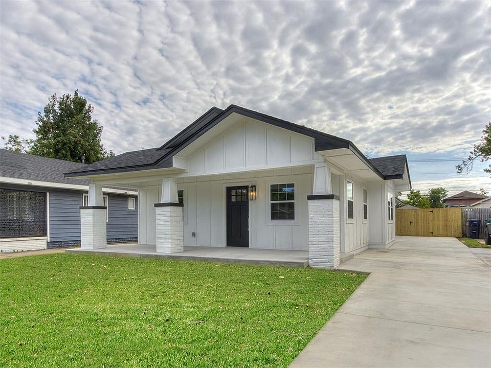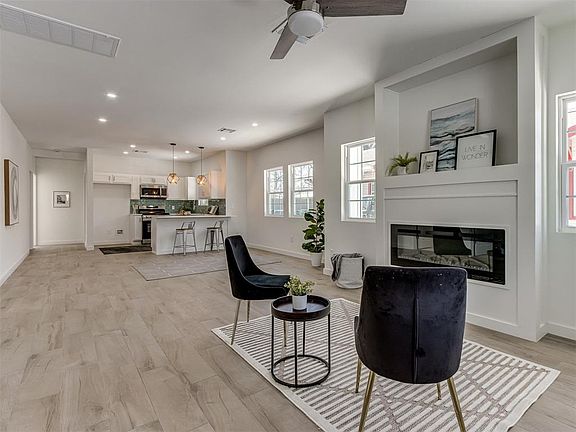 Welcome to 1704 NW 34th St, where charm meets modern elegance in the desirable Military Park neighborhood. Prepare to be captivated as you step onto the brand new driveway and are welcomed by a delightful front porch, beckoning you to relax and soak in the ambiance day or night. Inside, the open-concept layout boasts stunning wood-like tile flooring and a perfectly designed built-in fireplace insert, creating a cozy and inviting atmosphere that is sure to impress. Whether you're hosting a dinner party or enjoying everyday meals with your loved ones, the spacious dining area is ready to accommodate your every need. The kitchen features sleek quartz countertops, a gorgeous backsplash, a convenient breakfast bar, and a gas stove that will ignite your culinary creativity. With its thoughtful design and impeccable finishes, this kitchen is a dream come true for any aspiring chef. Retreat to the primary bedroom, a haven of tranquility and space. French doors lead out to the patio, where you can relax and enjoy your morning coffee or after a long day. The large closet and the most perfect primary ensuite, complete with his and her vanities, a luxurious free-standing tub, a rejuvenating shower, and a private water closet. The secondary rooms are equally impressive, offering a Jack and Jill bathroom with double vanities, providing ample space and storage for everyone's needs. Step outside into the backyard, perfectly sized for outdoor entertaining. Whether you're hosting gatherings or simply enjoying a peaceful evening under the stars, this backyard is the ideal setting for creating lasting memories. Don't miss out on the opportunity to make this amazing home yours. Experience the perfect blend of style, comfort, and convenience at 1704 NW 34th St. Call for your private showing.