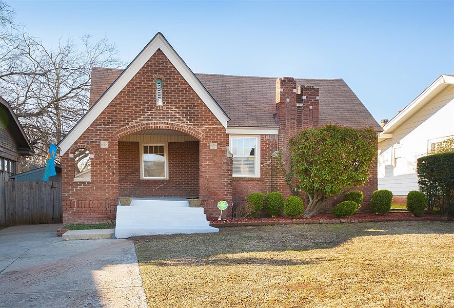 Cute English Tudor Home Close to OCU, Shopping and Restaurants. Original Hardwood Floors Throughout Living, Dining and Bedrooms. Living Room has Mock Brick Fireplace and is Open to Formal Dining Room or Could be Used as an Additional Living Area. Kitchen has Vaulted Ceiling With Wood Beams and Skylight and Separate Dining Area With Ceramic Tile. Refrigerator/Washer/Dryer Stay With the Property. Master is Spacious With Ceiling Fan and Good Natural Light. Exterior Back has an Open Patio With Large Deck. Detached Garage/Apartment Will not Fit a Car, but is Great for Lawn Equipment and Storage. The Detached Garage/Apartment are Being Sold "As Is".