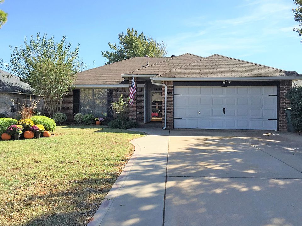 Fantastic home in highly desired Park Lane Estates! Great location, nice open floor plan, large living room with beautiful fireplace and high ceilings; awesome kitchen with pantry; Master suite includes tub/shower combo, double vanities and two closets; Large, fenced backyard that had new sod recently added and backs up to greenbelt. Awesome fire-pit with natural stone walkway. Garage has epoxy flooring and extra nook for work bench or storage; Extra wide driveway extended 3 feet; You will LOVE this home! Small pets welcome, with pet fee. NO SMOKING. Schools - Ida Freeman ES, Cheyenne MS, Edmond North HS