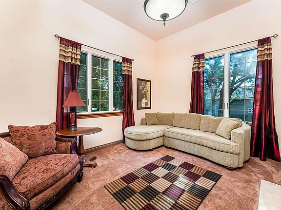 Welcome home to this sprawling one-owner custom designed Spanish-style 6bed/4.5bath/4+car beauty with attached shop on 1.19 treed acres in stunning Hunter's Point. Offering 5791 square feet, this home has ample space for entertaining or multi-generational occupancy. The unique curb appeal will impress you, from the extra large covered front porch to the tile roof and distinctive sunbeam doors. Built with Perform Wall construction, this home is fire resistant and made to withstand up to an F4 tornado. As you enter the home, you'll notice the cathedral ceilings in the tiled foyer, the abundance of natural light, and the extraordinary character of the home. The open kitchen boasts an extended center island, cherry cabinets, granite and tile counter tops, stainless steel appliances (including gas cooktop), iron stone back splash, and Tiger Wood Brazilian floors. A gigantic pass-through pantry opens to the main floor laundry, which features two wash sinks, a drop zone, and folding tables. A large adjacent formal dining room exits to one of three patios/balconies, and showcases the first of five fireplaces. At the other side of the kitchen, you'll find a breakfast nook/informal dining area and cheerful sun room with tiled floor. A formal living room with built-in shelving and display casing shares a second 2-way fireplace with an additional sunken informal den/hearth room. The first of two home offices is also located on the main floor, opening both to the kitchen and formal living rooms to allow open communication for those working from home. A half powder bath with tiled floors and counter tops is available to guests on this floor. A second wing of the main floor functions as a mother-in-law quarters or perfect guest room - featuring a sitting room/foyer with it's own exterior entry, spacious bedroom, walk-in closet, and en suite bath with walk-in shower. Upstairs, you'll find a generously-sized master bedroom with its own hearth room offering built-in desk and sitting area. A huge walk-in closet boasts several built in dressers and shelving, and the spa-like master bath has dual vanities with lots of counter space, jacuzzi tub, glass block walk-in shower, and expanded linen closet. Additional master bedroom upgrades include a private fireplace and composite balcony patio allowing privacy and excellent views of the acreage and surrounding trees. Completing the upper level are two additional bedrooms with built-in shelving and window seating, a clean and updated Jack and Jill bath with tiled shower, additional storage, and second balcony patio facing the front of the home. Downstairs, you'll discover a true walk-out basement with open family/rec/game room, stately wet bar, fifth fireplace, and adjacent sun room/2nd office/workout area. A theatre/media room comes with much of the equipment, including projector, speakers, shelves, and surround sound equipment. Also in the basement is bedroom 5 with French doors to the back yard, a potential sixth bedroom that is currently being used as a game room, a full bath with shower/tub combo, and spacious 15'x18' safe/storage room with 10 concrete walls. Mechanical upgrades include zoned HVAC, 3-year-old water heater, water softener, radiant heat system in the basement and shop, R30 tiled roof, and whole house surround sound. Outside, there's lots of room for storage or projects in the over-sized 3-car garage and attached heated shop. A plant room and additional storage room are also accessible from the back yard. Additional exterior amenities include a partially-fenced yard, lots of mature trees (including apples, mulberry, and willows), a huge partially-covered rear patio, fire pit, sprinkler system, and irrigation well. This home has no special taxes and sits in a quiet neighborhood with excellent neighbors. Call us today for more photos, a showing, or additional information. You won't find another one like this! **See the 3D and aerial flyover tours for additional views of this home.**