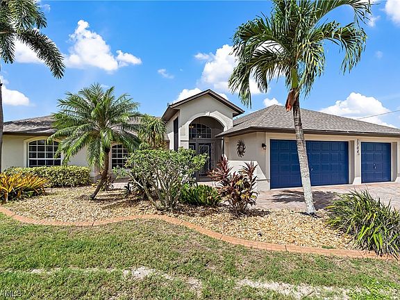 Welcome Home to this beautiful SW Cape Coral property. This home truly has all the bells and whistles for comfort. Split floorplan includes 3 spacious bedrooms, 2 full bathrooms and a huge 3-car garage. Lovely eat-in kitchen, has some new stainless appliances, granite countertops, plenty of cabinet space and a pantry. Open concept expanding glass doors present you to an outdoor kitchen/ bar, custom salt water pool w/a spillover spa perfect for entertaining. This house has been well maintained. The water heater and roof are newer, AC has been serviced, plantation shutters throughout and the landscaping has a tranquil atmosphere. A MUST SEE! YOUR DREAM HOME AWAITS!