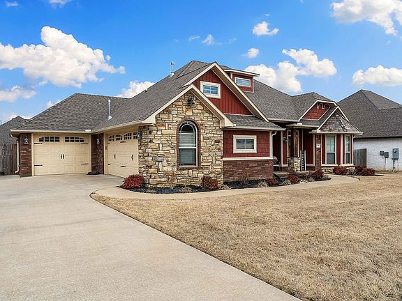 Charming craftsman-style home with a three-car garage, built by Ronald Ragon Homes in the sought-after Elk Horn subdivision. So much to love here! This desirable one-level layout also has a fully fenced backyard. Wood-look tile spans the core and wet spaces, with carpet in the bedrooms. The master suite offers a large claw foot tub, a separate glass shower, and double vanities. The split floor plan places the other two bedrooms on the opposite side of the home. With a visionary mayor, Pea Ridge is a growing community with exciting plans, including a pickleball court in the subdivision and a future disc golf course around the corner. Located just 15 minutes from Downtown Bentonville or Rogers and minutes from Bella Vista’s mountain bike trails, this home's location is amazing. Another bonus: Wal-Mart drone delivery is available in this neighborhood! Don’t miss out—request the virtual interactive tour or schedule your private showing today!