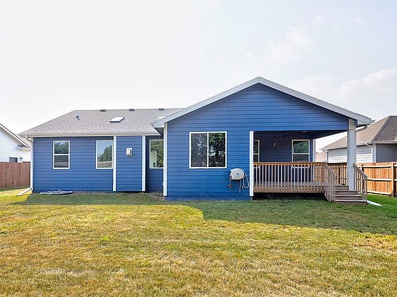 This two-year-old ranch offers a wealth of features, from skylights in the vaulted great room to the rustic barn wood ceiling in the kitchen and a covered deck. The main floor boasts beautiful LVP flooring. The kitchen is stunning with quartz countertops, stainless steel appliances, and a spacious pantry. The split bedroom plan provides a private owner's retreat with a tray ceiling, a large walk-in closet, and a beautiful en-suite bath. Two additional bedrooms share a full bath on the main floor. There's a convenient drop zone and laundry off the garage. The 3-car garage features epoxied floors. This home is part of an estate sale and is being sold as-is.